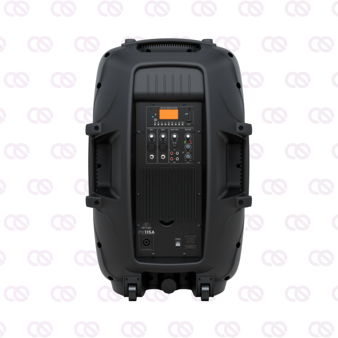 На задней панели BEHRINGER PK115A размещен интегрированный медиаплеер с ярким дисплеем, слотом для SD-карты, USB-портом и встроенным приемником Bluetooth, предоставляя множество опций для воспроизведения музыки. 2-х канальный микшер с отдельными микрофонными/линейными входами, регуляторами громкости и светодиодами перегрузки обеспечивает легкость и гибкость в управлении звуковыми параметрами.