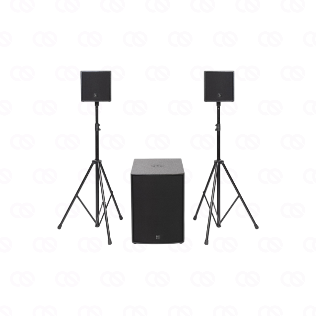 Компактный и мощный активный акустический комплект, состоящий из двух пассивных сателлитов с коаксиальными 8” (1” драйвер) динамиками и сабвуфера с 15” (катушка 3”). Сабвуфер имеет встроенный 3х канальный усилитель с модулем DSP.Мощность встроенного усилителя 2х400 Вт + 800 Вт.