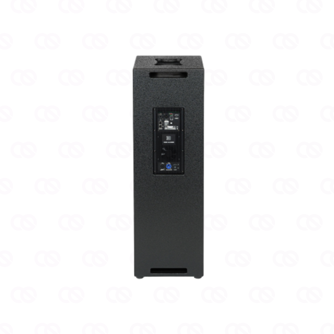 Сабвуфер со встроенным усилителем: 2х12" низкочастотных динамика в фазоинверторе, диапазон частот: 40-300 Гц (+-3 дБ), максимальное звуковое давление: 137 дБ, мощность: 1200 Вт, встроенный DSP (x-over, delay, PEQ x9, limiter), габаритные размеры: 1070х330х400 мм, вес 44 кг.