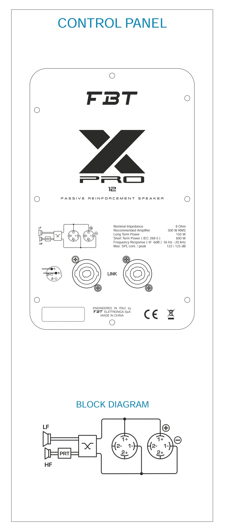 FBT X-PRO 12 - Мощная и надежная пассивная акустическая система с 12-дюймовым НЧ динамиком и 1-дюймовым ВЧ компрессионным драйвером. Общая мощность 1300 Вт при 8 Ом обеспечивает качественный звук в диапазоне 56 Гц - 20 кГц. Идеальный выбор для профессионального звукового оборудования.Технические характеристики:
