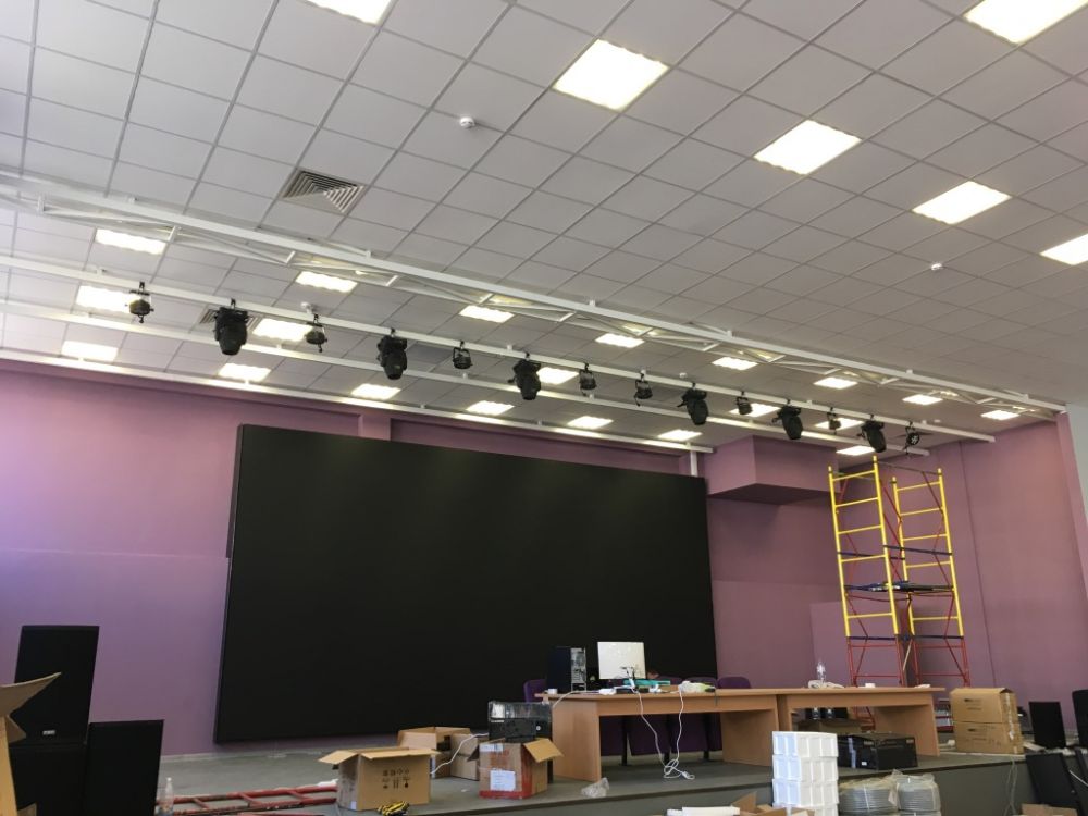 Приборы были установлены на фермах и сварных конструкциях с учётом архитектуры зала и оптимального охвата сцены и зрительного пространства.