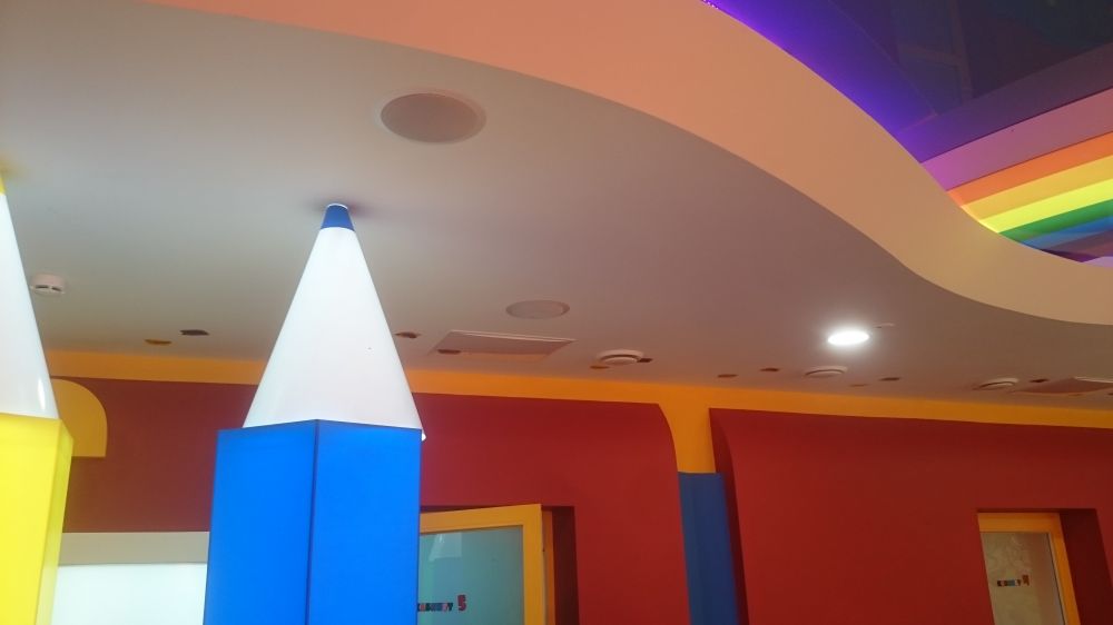 Вторым элементом проекта стала система озвучивания помещений. Музыкальное сопровождение играет важную роль в формировании спокойной обстановки: правильно подобранные мелодии помогают отвлечь внимание от предстоящих процедур, снижают стресс и поддерживают положительное настроение.