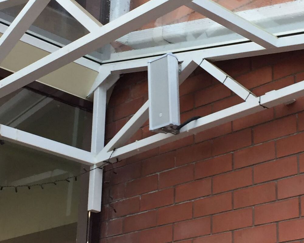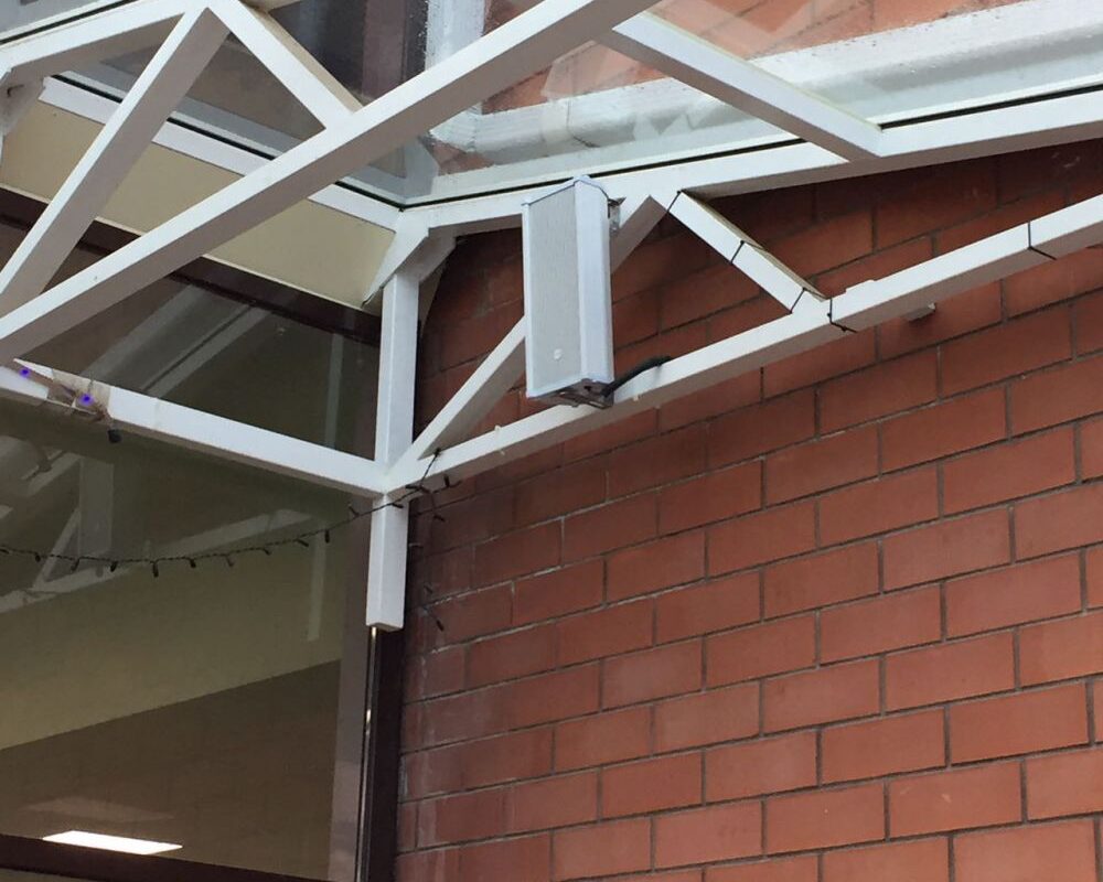 Инсталляторы компании “Концепт Групп” успешно осуществили монтаж системы фонового звучания перед супермаркетом.