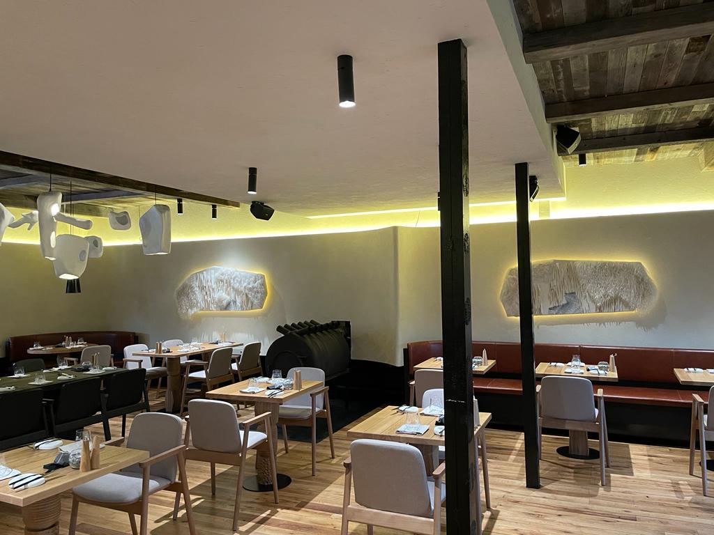 В ресторане «Племя» на территории парк-отеля рядом с плато Лаго-Наки мы создали акустическую среду, поддерживающую концепцию открытого огня и живой кухни. Каждый элемент — от выбора акустики до логики управления — нацелен на мягкий, ненавязчивый фон, который не мешает общению и подчеркивает атмосферу заведения.