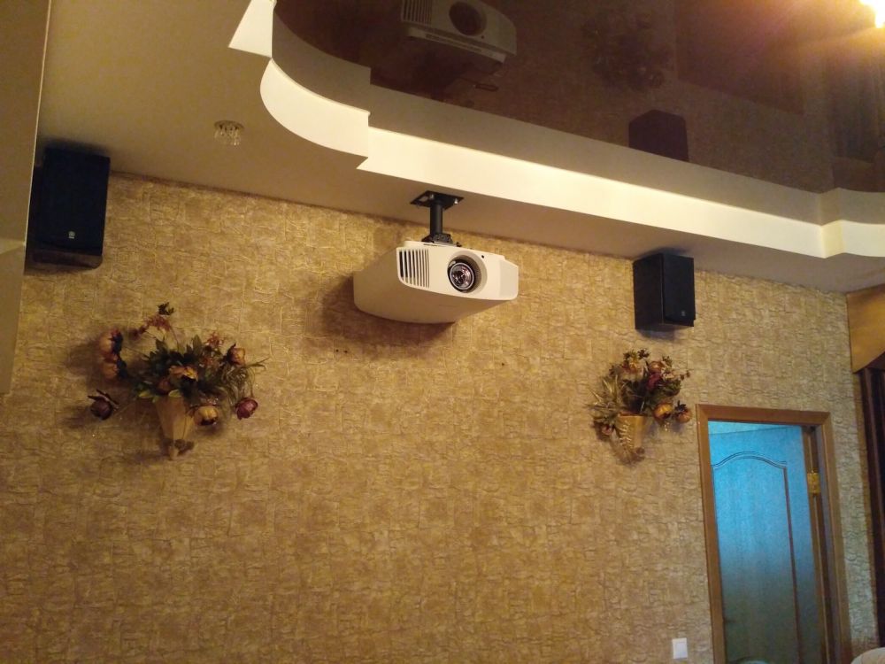 Чтобы дополнить визуальное погружение, были установлены тыловые каналы акустической системы Yamaha, интегрированные в существующую аудиосистему. Это позволило достичь эффекта surround sound, создающего ощущение присутствия внутри сцены — будь то шум дождя, гул самолёта или музыкальный аккомпанемент фильма.