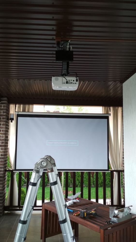 - Установка проекторов и экранов внутри дома и на открытых территориях;